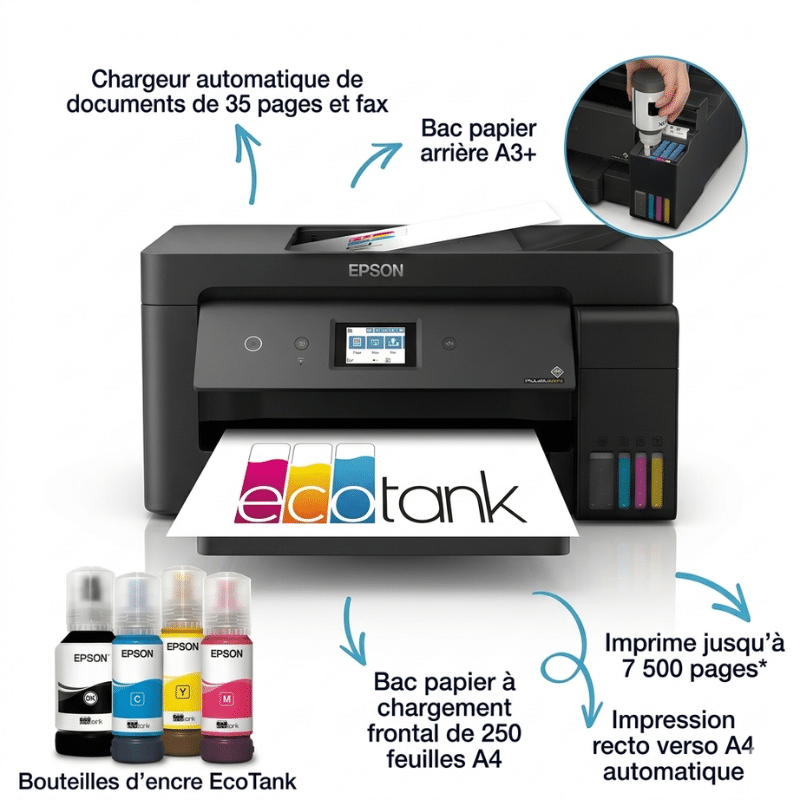• Imprimante multifonction AIO 4-en-1 jet d’encre A4 – E¨PSON EcoTank ET-15000 (C11CH96401)